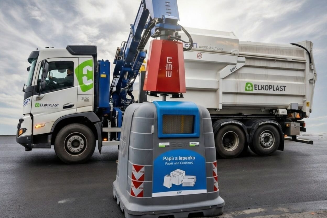 - Robotická ruka umožňuje vysypávání kontejnerů z obou stran.